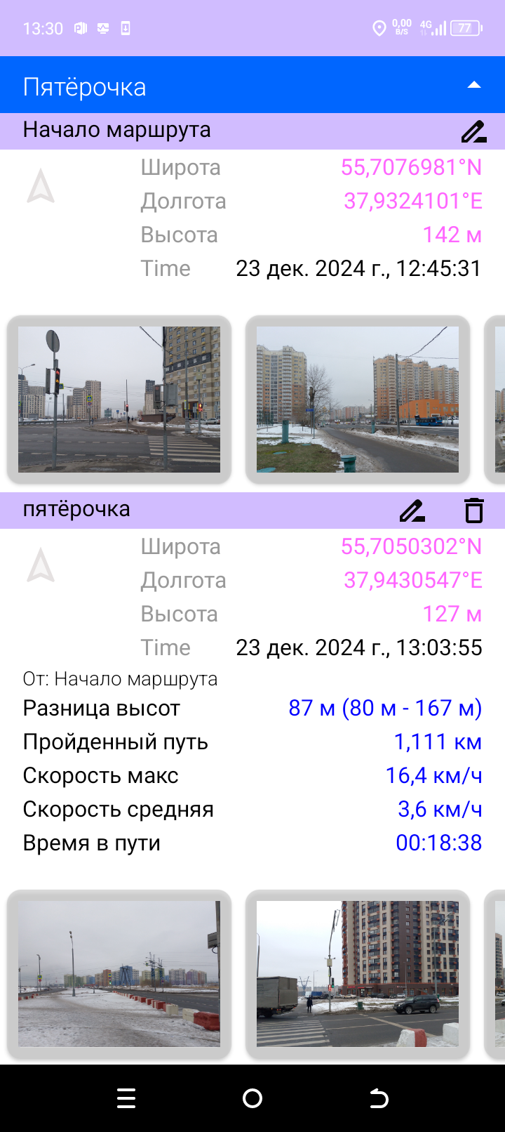 The navigation function "in a straight line" to any single point on the ground, as well as automatically along the entire route, will help you navigate off-road, in the forest, at the sea and in the airspace, will show the azimuth and the remaining distance to the target. For navigation, you can use both the GPS signal and the smartphone's compass, if available. The application can be used without a mobile internet connection. You can record your travel routes with high accuracy, save your favorite waypoints with photos, share them with friends around the world via KML, KMZ and JPX files, and post routes with photos on Google Earth. Routes include information about time, speed, and distance traveled, taking into account the terrain. The app saves your home (initial) location and your favorite locations, to which you can easily set a route, for example, to return from the forest after a mushroom hunt, as well as save mushroom spots and navigate to them in the future. When navigating a route (a series of points), both forward and backward, the program will automatically determine the nearest point for orientation. It is possible to receive detailed information not only on saved route points, but also on each point, segment of the path, as well as delete unnecessary points. On the main screen of the program there is information about the current coordinates and altitude, current, average and maximum speed, travel time and distance traveled. As well as the direction to the navigation point and the distance to it. The program uses Yandex maps with house numbers. There are also many settings and additional options.For tourists, yachtsmen, travelers, motorists, cyclists, mushroom pickers, outdoor enthusiasts and hikers. |